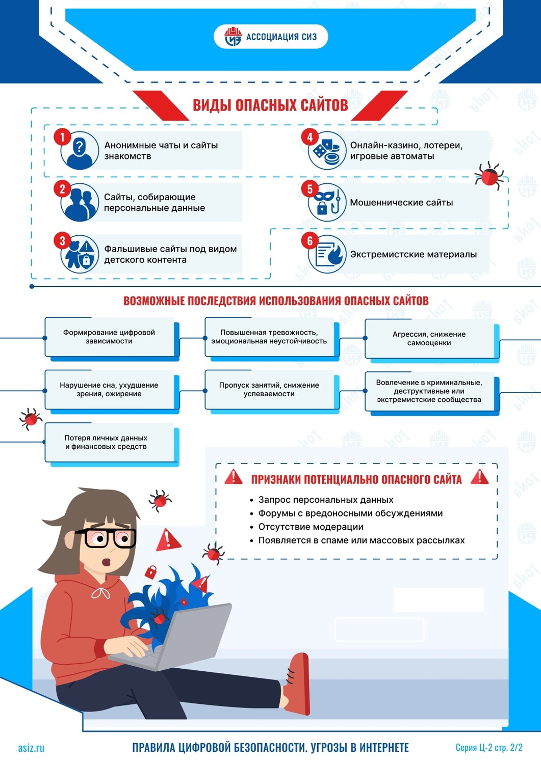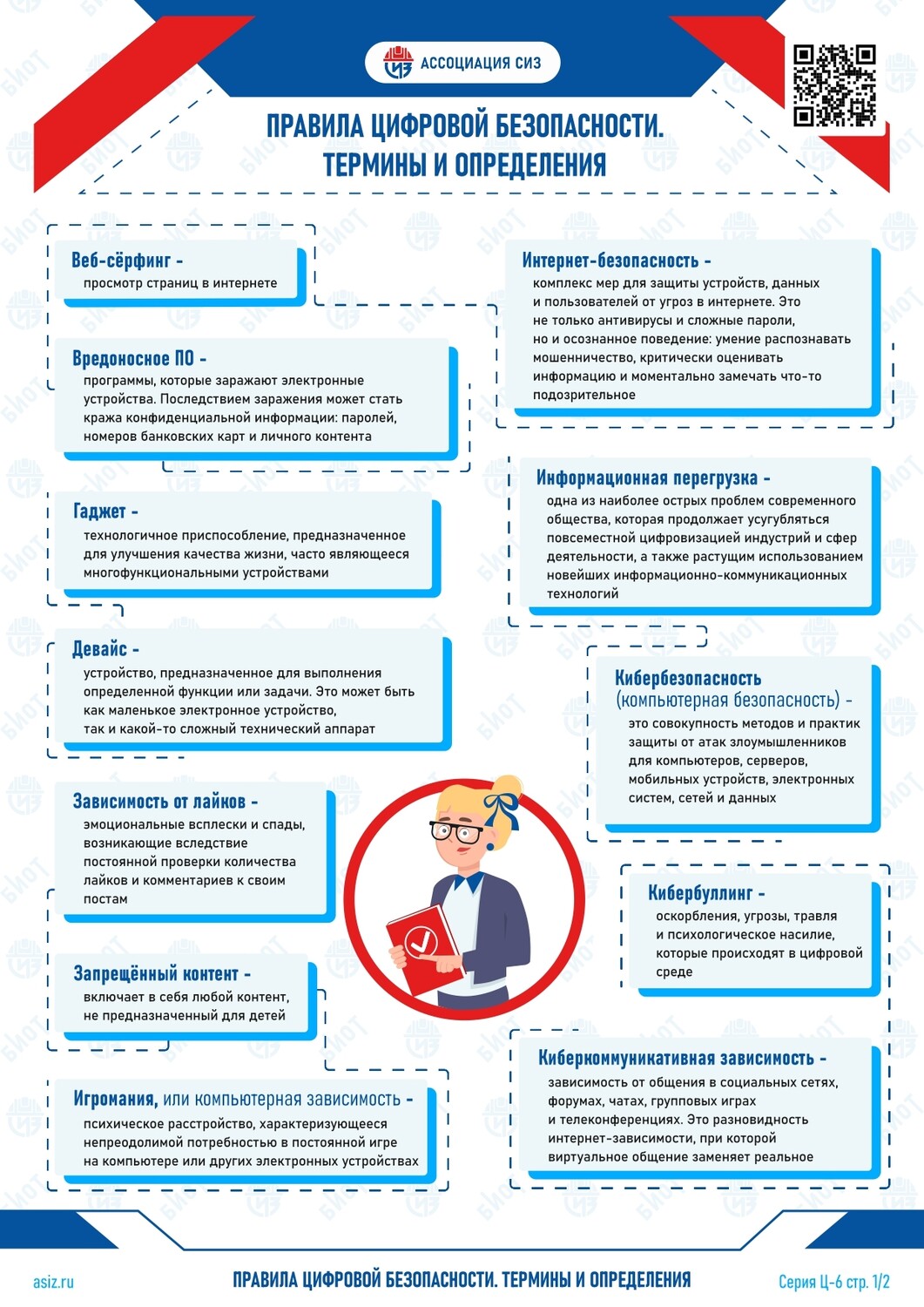 Ассоциация разработчиков, изготовителей и поставщиков средств индивидуальной защиты (Ассоциация «СИЗ») в связи с началом учебного года, а значит еще одного года активной цифровой жизни миллионов людей и подростков, подготовила серию инфографик по цифровой безопасности.