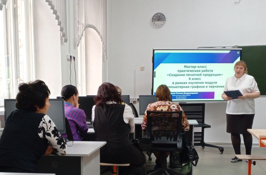 Максимова Н. В., учитель труда (технологии) МБОУ СОШ №2, провела для коллег мастер-класс «Компьютерная графика. Создание печатной продукции» в рамках преподавания модуля «Компьютерная графика и черчение».